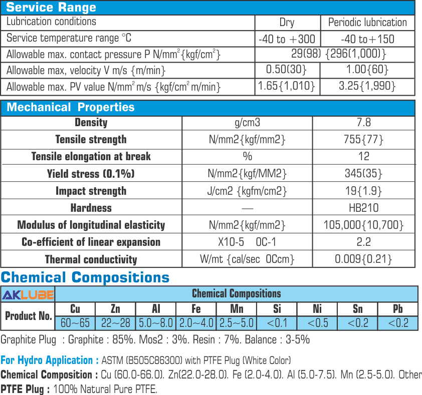To obtain the best possible lubrication the solid lubricant should be arranged in an overlapping pattern in slide direction. The amount of solid lubricant in proportion to the sliding area is between 25 to 35% of the total sliding area. Graphite with additive is use as a solid lubricant. For extreme application, sliding speeds >0.2m/s, additional lubrication is recommended.